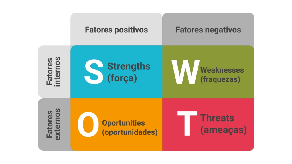 O termo SWOT vem das palavras “Strengths”, “Weaknesses”, “Opportunities” e “Threats”. Traduzidas para o português, significam “Forças”, “Fraquezas”, “Oportunidades” e “Ameaças”.